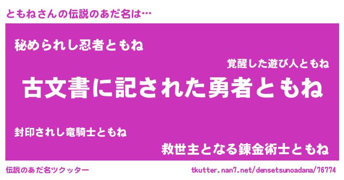 | ヒーロー風カッコイイあだ名 | 『ネオトモネ』『超時空戦士トモネ』 |