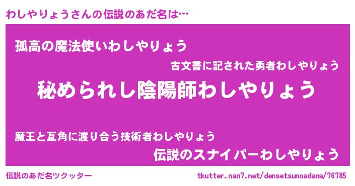 | 意味不明あだ名 | 『わしやりょうフォーエバー』 |