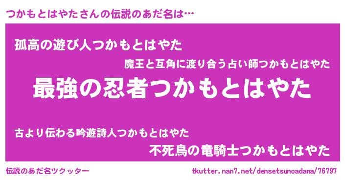 | 意味不明あだ名 | 『つかもとはやたフォーエバー』 |
