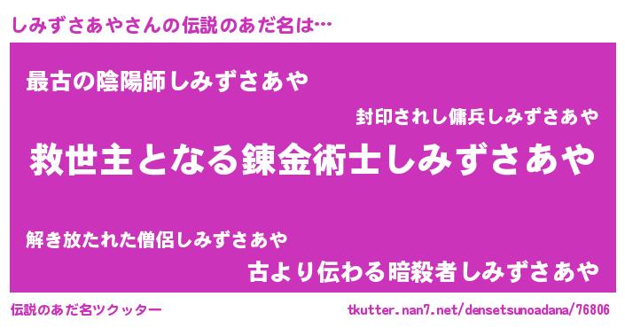 | 意味不明あだ名 | 『自称しみずさあや』 |