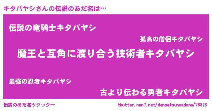 | ヒーロー風カッコイイあだ名 | 『愛の使者キタバヤシ』『仮面キタダー』 |