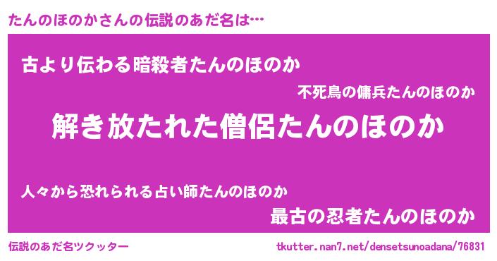 | 男性向けラノベタイトル風あだ名 | 『転生したらたんのほのかだった件』 |
