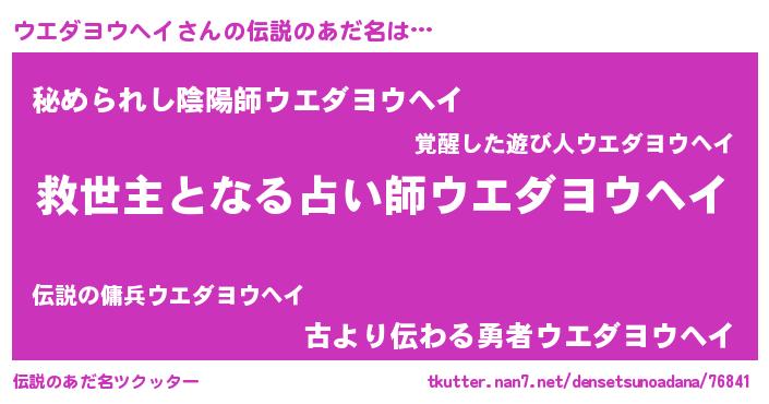 | 男性向けラノベタイトル風あだ名 | 『ノーゲーム・ノーウエダヨウヘイ』 |