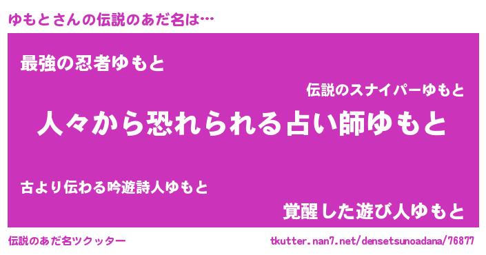 | ポケモン風あだ名 | 『ユックウザ』『ユモトダネ』 |