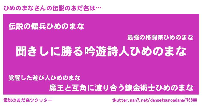 | ヒーロー風カッコイイあだ名 | 『仮面ヒメダー』『ネオヒメノマナ』 |
