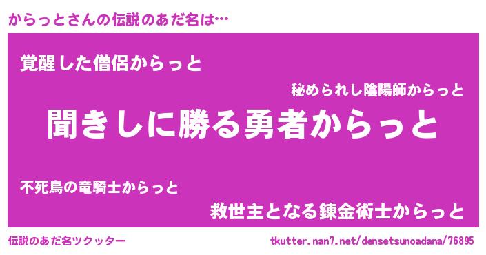 | ファンタジー風あだ名 | 『カークカララー』『ゼカラトゥ』 |