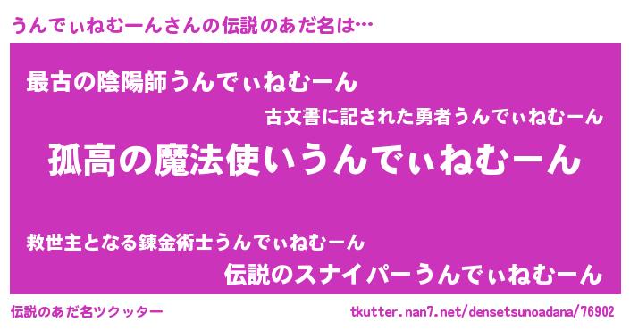 女子向けラノベタイトル風あだ名 | 『うんでぃねむーんは平凡を望む』 |