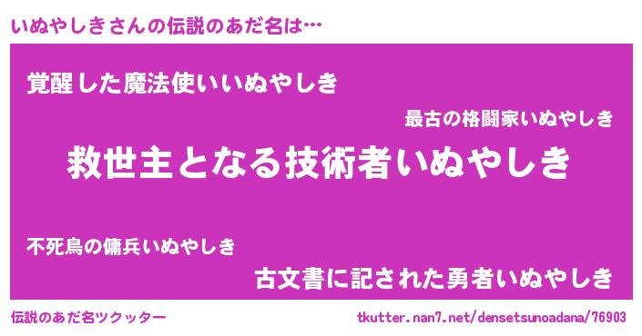 | 男性向けラノベタイトル風あだ名 | 『Re:いぬやしきから始める異世界生活』 |