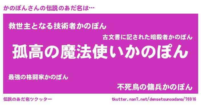 | 意味不明あだ名 | 『とにかく怪しいかのぽん』 |