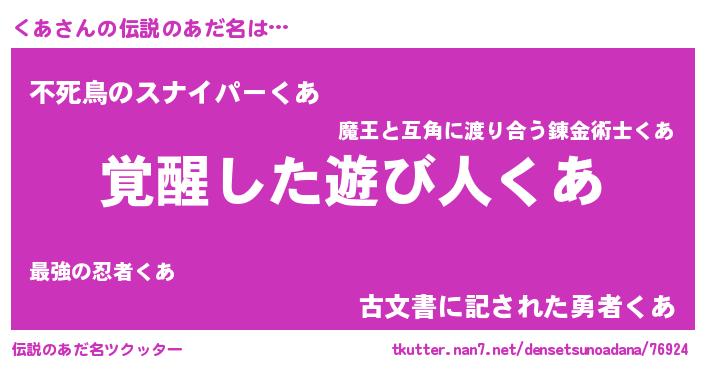 | ヒーロー風カッコイイあだ名 | 『天弓騎士クア』『最強戦士クア』 |