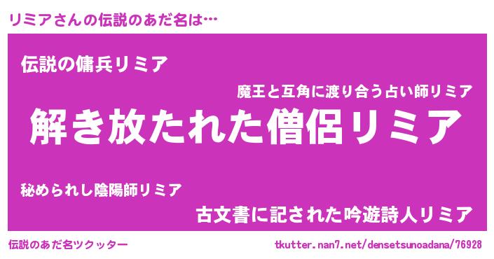 | ヒーロー風カッコイイあだ名 | 『魔戒騎士リミ』『ウルトラ戦士リミア』 |