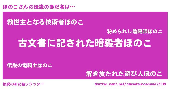 | ヒーロー風カッコイイあだ名 | 『ネオホノコ』『仮面ホノダー』 |