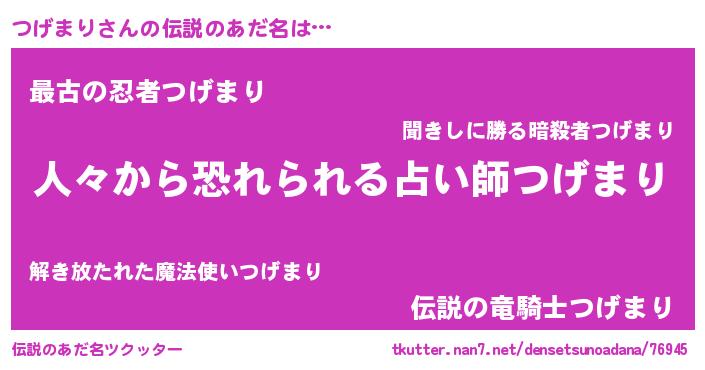 | ヘコむあだ名 | 『つくし』『つげもー』『つげぷりん』 |