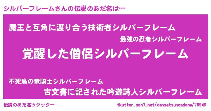 | 男性向けラノベタイトル風あだ名 | 『シルバーフレームの嫁は女の子じゃないと思った?』 |