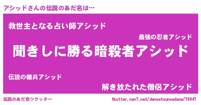 | 男性向けラノベタイトル風あだ名 | 『アシッドという概念が存在しない退屈な世界 』 |