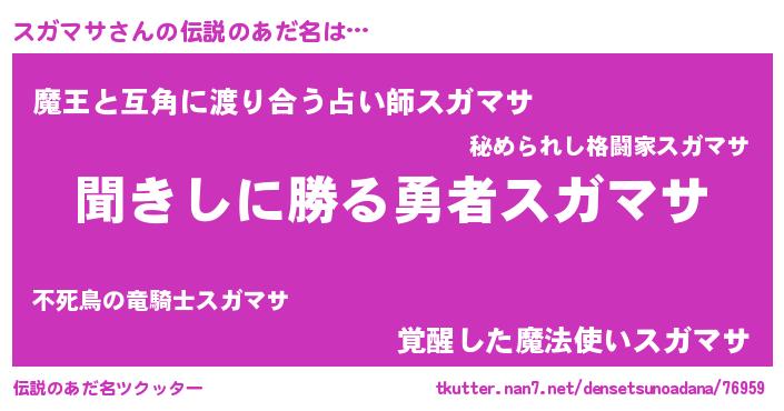 | 男性向けラノベタイトル風あだ名 | 『緋弾のスガマサ』 |