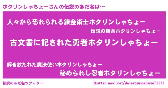 | ヒーロー風カッコイイあだ名 | 『ネオホタリンシャチョー』 |