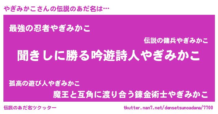 | 意味不明あだ名 | 『永久保存やぎみかこ』『自称やぎみかこ』 |