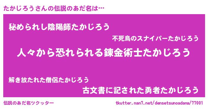 | ヘコむあだ名 | 『つくし』『たかじろう(苦笑)』 |