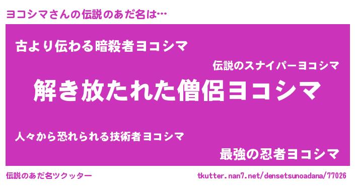 | ヒーロー風カッコイイあだ名 | 『銀牙騎士ヨコ』『ネオヨコシマ』 |