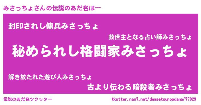 | 女子向けラノベタイトル風あだ名 | 『みさっちょなんてお断りですっ。』 |