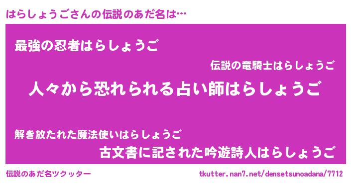 | 意味不明あだ名 | 『住所不定無職はらしょうご(65歳)』 |