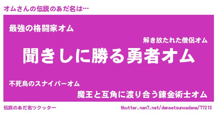 | ヒーロー風カッコイイあだ名 | 『ネオオム』『仮面オムダー』 |