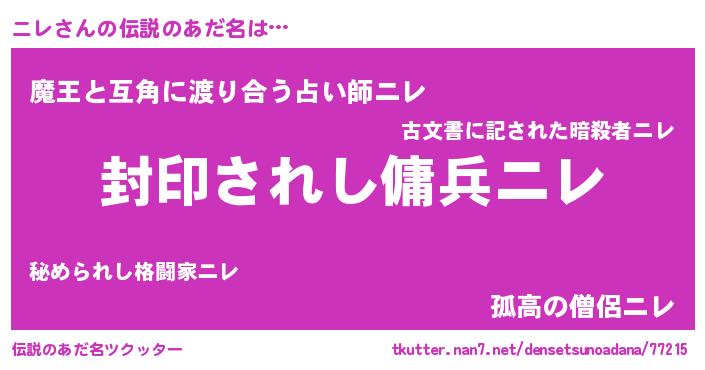 | ヒーロー風カッコイイあだ名 | 『スーパーニレ』『愛の使者ニレ』 |