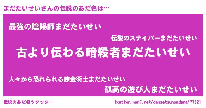 | 胡散臭い通販商品みたいなあだ名 | 『来世でも幸せになれる健康食品…その名も「まだたいせい」』 |