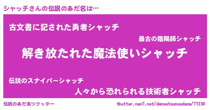 | ヘコむあだ名 | 『シャ太郎』『シャッチ(震え声)』 |
