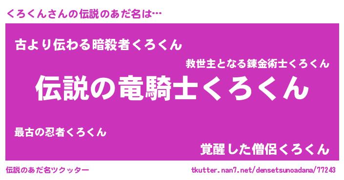 | 2回繰り返すあだ名 | 『くろくろ』『くるくる』『もろもろ』 |