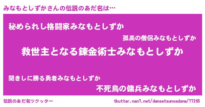 | ヒーロー風カッコイイあだ名 | 『慈愛の使者みなもとしずか』 |