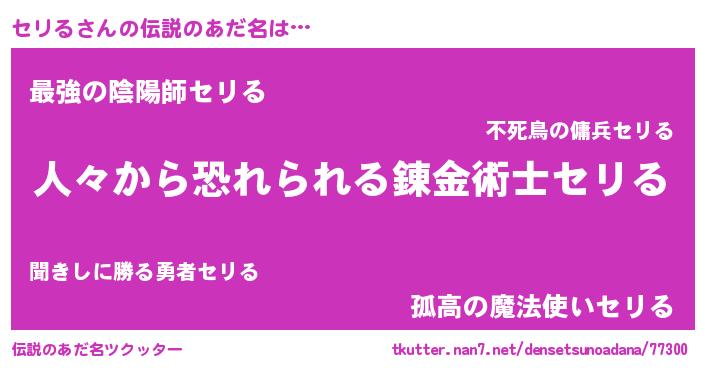| ファンタジー風あだ名 | 『クインセット』『エターナルセリルー』 |