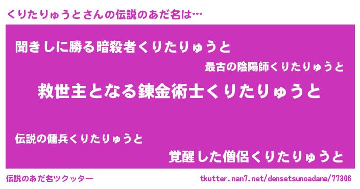 | ヘコむあだ名 | 『くりたりゅうと(苦笑)』『くりっ子』 |