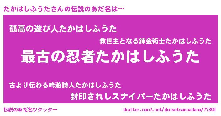 | 意味不明あだ名 | 『住所不定無職たかはしふうた(56歳)』 |