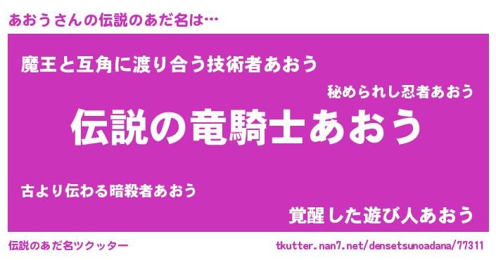 | 男性向けラノベタイトル風あだ名 | 『あおうの憂鬱』『魔弾の王とあおう』 |