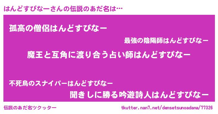 | ヘコむあだ名 | 『はんっ子』『はんどすぴなー(苦笑)』 |