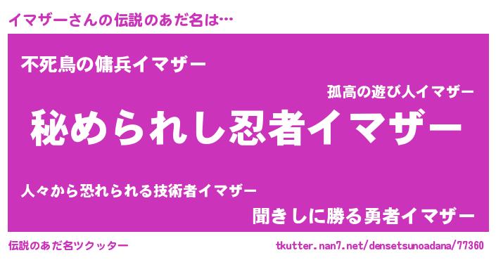 | 男性向けラノベタイトル風あだ名 | 『緋弾のイマザー』『イマザーの憂鬱』 |