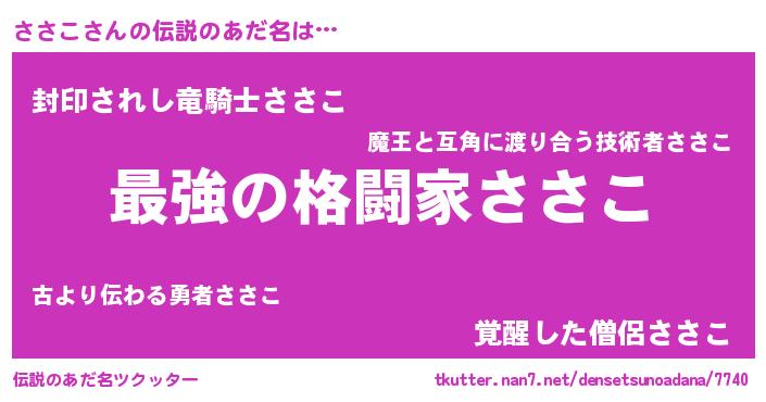 | ヒーロー風カッコイイあだ名 | 『ウルトラささこマン』『究極戦士ササコ』 |