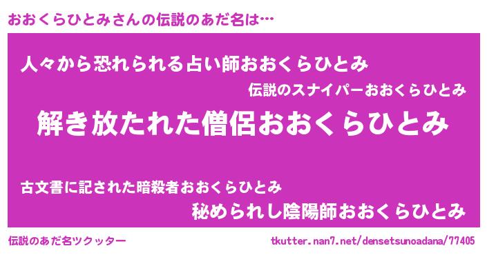 | 意味不明あだ名 | 『とにかく怪しいおおくらひとみ』 |