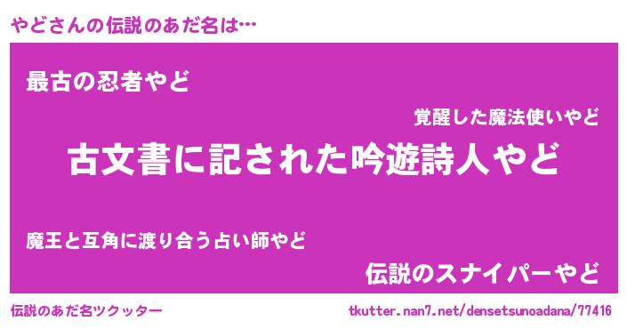 | ヒーロー風カッコイイあだ名 | 『仮面ヤドダー』『ネオヤド』 |