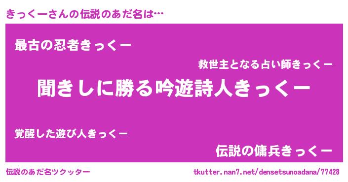 | 男性向けラノベタイトル風あだ名 | 『緋弾のキックー』『きっくーの憂鬱』 |