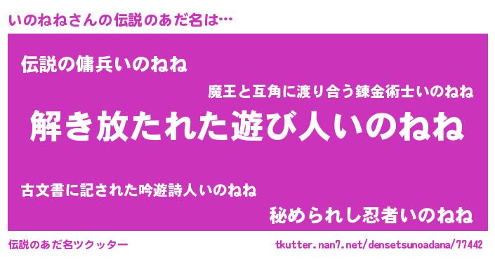 | 意味不明あだ名 | 『もやし科いのねね属』『自称いのねね』 |