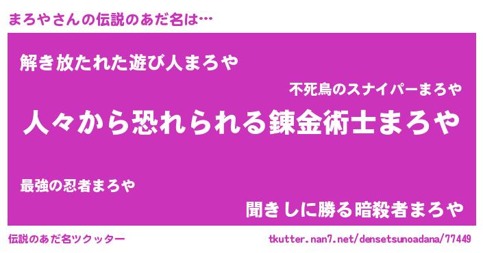 | ヒーロー風カッコイイあだ名 | 『正義の使者まろや』『最強戦士マロヤ』 |