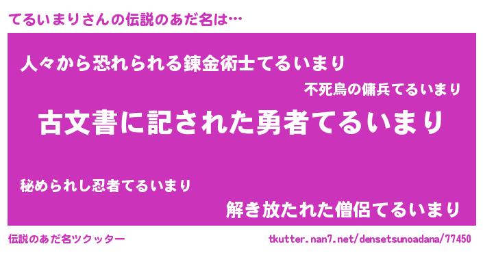 | 意味不明あだ名 | 『永久保存てるいまり』『自称てるいまり』 |