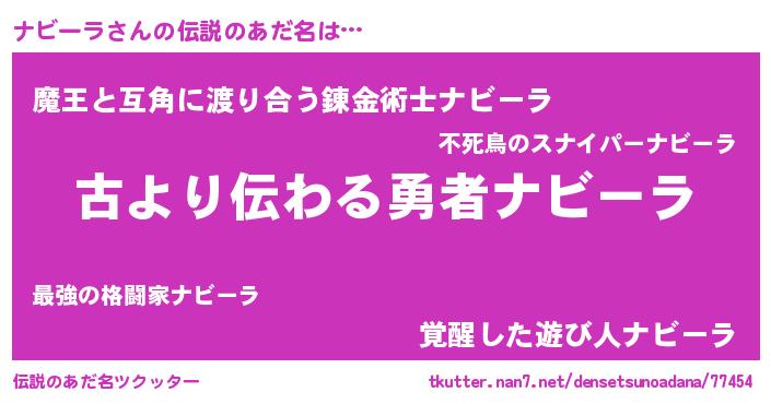 | 意味不明あだ名 | 『住所不定無職ナビーラ(85歳)』 |