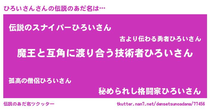 | 女子向けラノベタイトル風あだ名 | 『ひろいさん恋絵巻』 |