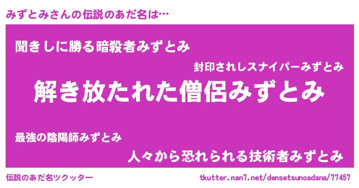 | 意味不明あだ名 | 『自称みずとみ』『永久保存みずとみ』 |