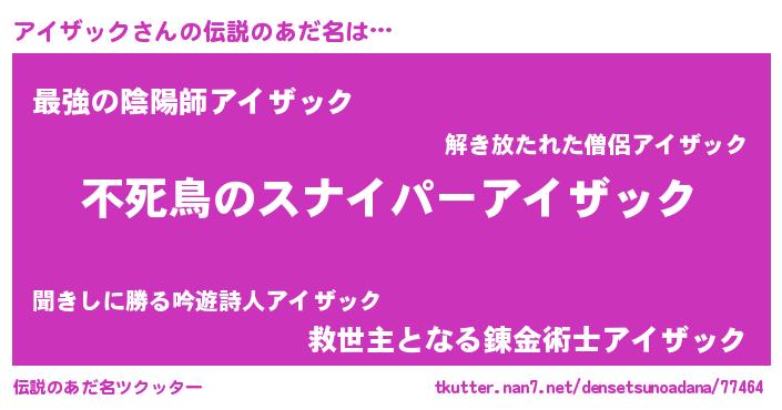 | 女子向けラノベタイトル風あだ名 | 『乙女ゲームの破滅フラグしかない悪役アイザックに転生してしまった…』 |