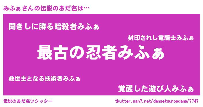 | 意味不明あだ名 | 『みふぁフォーエバー』『永久保存みふぁ』 |